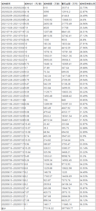 2025年2月26日,减持610万股,减持套现金额为2537.6万元。本次减持过后,邵根伙持股比例降至22.73%。