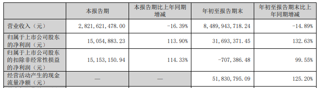 2023年度、2024年度、2025年前三季度,天原股份归属于上市公司股东的净利润分别为3996.47万元、-4.60亿元、3169.34万元,归属于上市公司股东的扣除非经常性损益的净利润分别为-2.33亿元、-4.29亿元、-70.74万元。