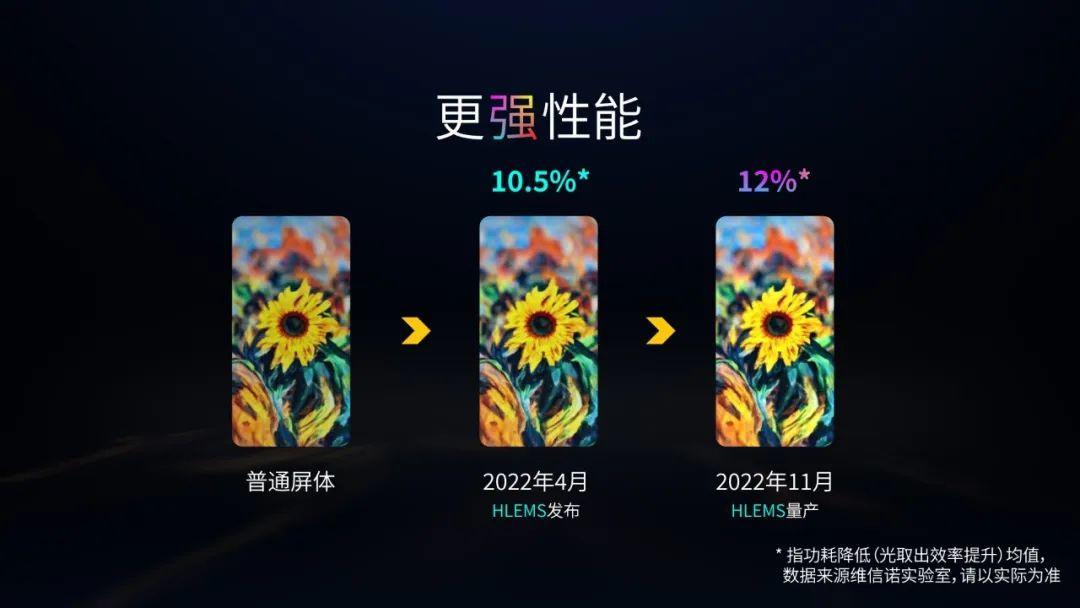 IT之家 11 月 9 日消息,维信诺 Visionox 今日宣布,时隔仅 6 个月,维信诺继于 2022 年新技术发布会上发布 HLEMS 技术后,将其性能进一步提升,目前该技术已进入量产阶段。