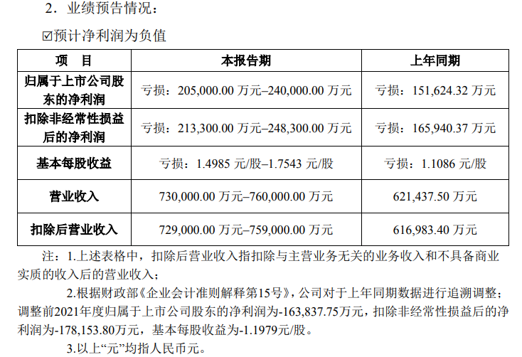 IT之家 1 月 30 日消息,维信诺科技股份有限公司今日公布了 2022 年度业绩预告,预计 2022 年营业收入 73 亿元至 76 亿元;全年净亏损 20.5 亿元至 24 亿元,同比上年减 35.2%至 58.29%。