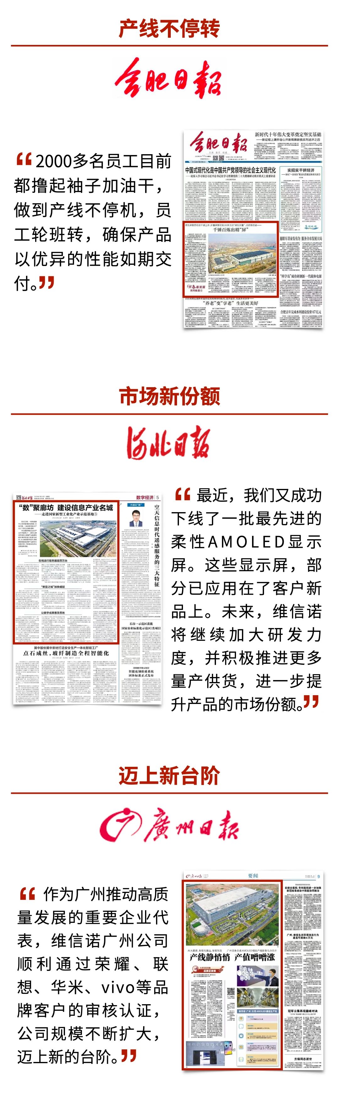 2023年是兔年,也是突破之年。随着开年伊始即迎来旺盛的生产需求,维信诺四大创新基地已呈现出“市场需求”和“技术创新”双轮驱动的强劲活力,“显示”出中国经济社会发展的强劲脉动,为推动实现高质量发展注入新动能,媒体纷纷将目光聚焦于“新兴显示”产业的发展: