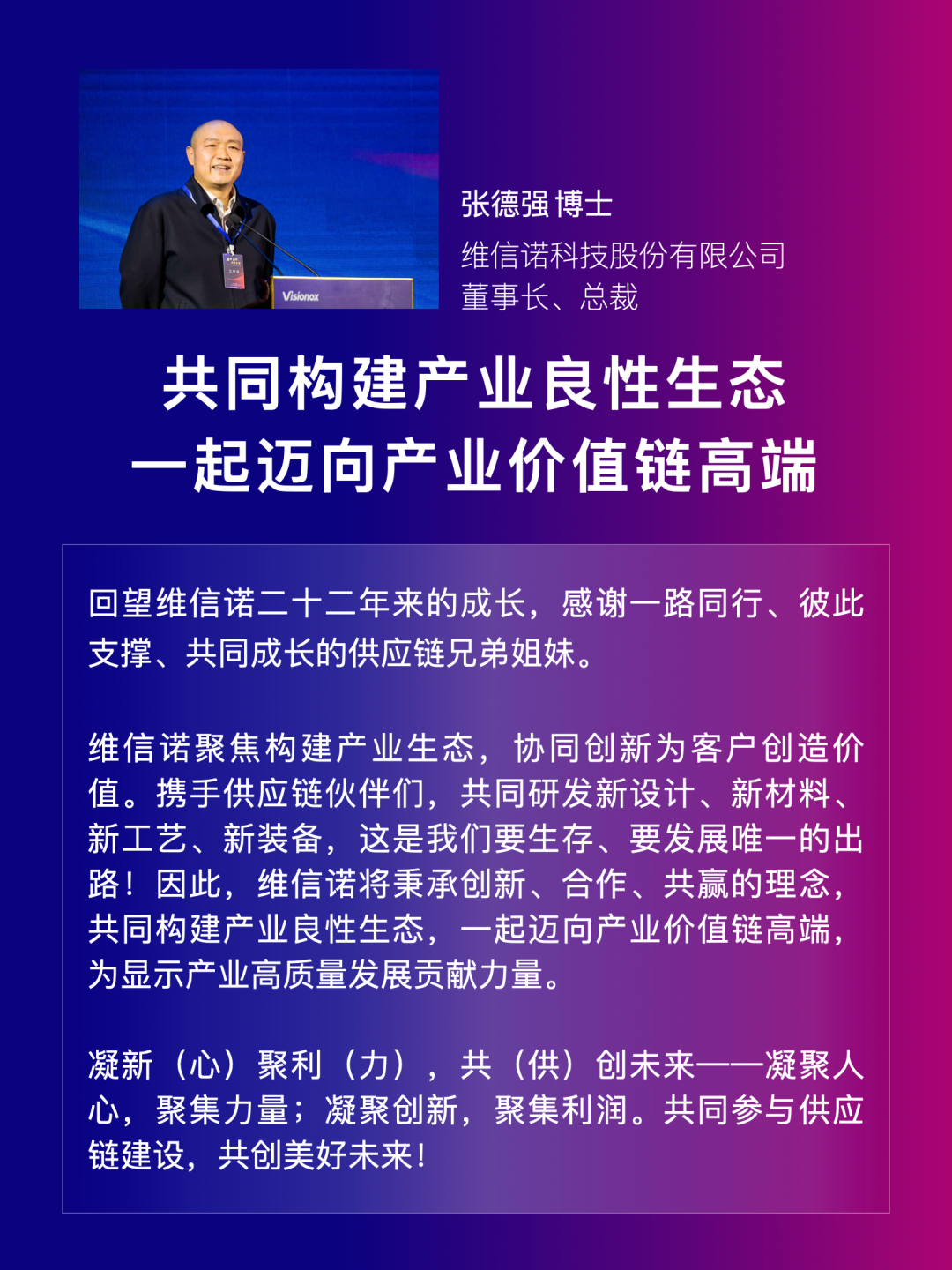 2023年是维信诺蓄势待发、勇毅前行的一年。为提振行业协同发展的信心,加深供应链后续联系与合作,3月31日,维信诺核心供应伙伴大会在安徽合肥隆重召开。合肥新站高新区管委会等政府领导、维信诺核心供应伙伴等共话产业协同发展新征程。