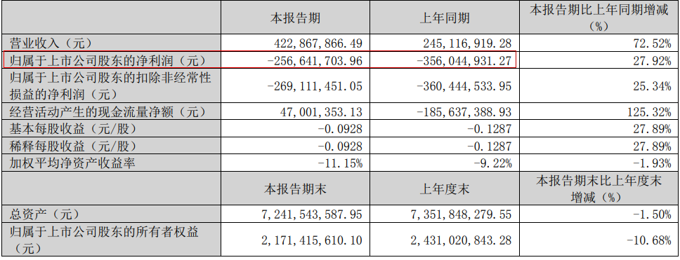 华映科技:营收4.23亿元,同比增长72.52%,净利润亏损2.57亿元