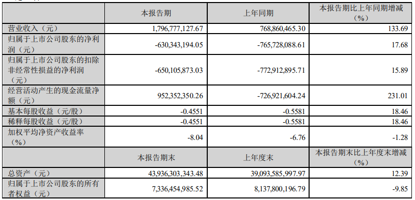 维信诺:营收17.97亿元,同比增长133.69%