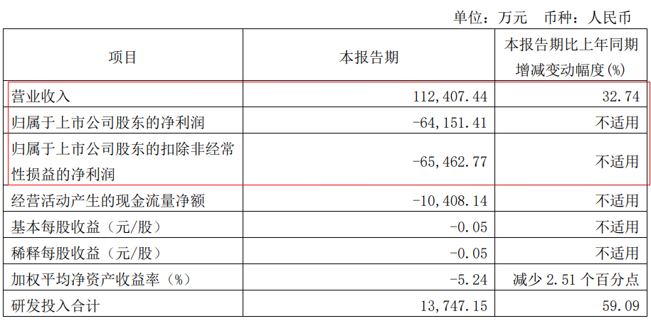 和辉:营收约11.24亿元,同比增加32.74%,亏损6.42亿元