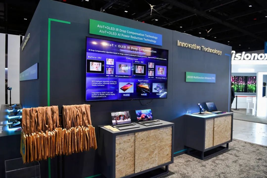 京东方现场展示了全球领先的14英寸低功耗笔记本显示产品,采用第十代氧化物技术,功耗较常规产品降低30%,保持120Hz刷新率时面板功耗低至0.7W。京东方全球首发采用一体化功能集成技术的23.8英寸Easy显示器,可节省显示材料50%,采用可回收玻璃比例达30%。