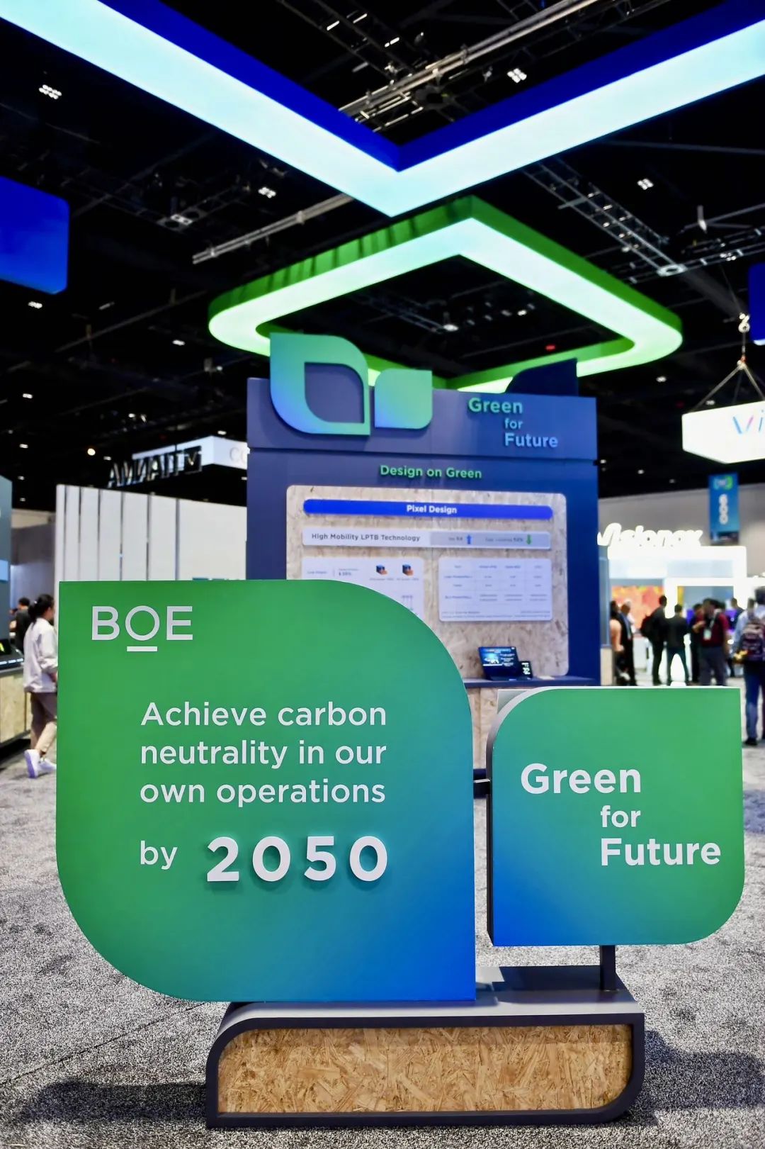 京东方在今年SID展区中心特别增设立了绿色低碳专区,全面展现了在绿色智造、绿色产品技术、绿色供应链等领域的行业引领地位,并带来了多款领先的低功耗技术及绿色低碳的笔记本、显示器、手机等产品,实现从设计、模组、面板到整机的全流程一体化的绿色可持续发展。