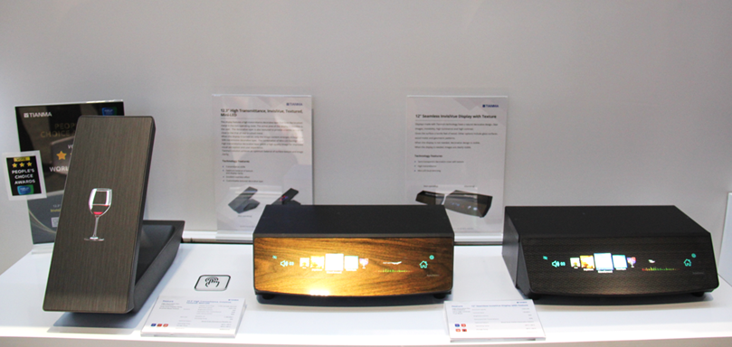 本次展会,天马展示了多款隐藏显示屏,赋予显示器浑然天成的科技美感。在息屏状态下,显示屏与内饰完美融合。显示屏点亮后,灵动的显示画面浮现在装饰层上方。装饰层含有接近真实材质的触感,同时具有高清显示画质。显示器搭配Mini-LED背光展示优秀的一体化效果,实现屏幕的完美隐藏,提升视觉观感及用户体验感。