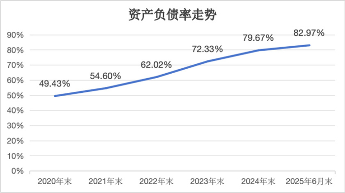 值得一提的是,近年来,维信诺负债率节节攀升。资产负债率从2020年末的49.43%上升至2025年末的82.97%。