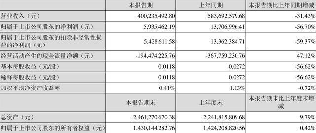 新亚制程(002388)4月28日披露2022年第一季度报告。报告期内公司实现营业总收入4.00亿元,同比下降31.43%;归母净利润593.55万元,同比下降56.70%;扣非净利润542.86万元,同比下降59.37%;经营活动产生的现金流量净额为-1.94亿元,上年同期为-3.68亿元;报告期内,新亚制程基本每股收益为0.0118元,加权平均净资产收益率为0.41%。