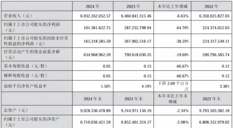 财报数据显示,信邦制药近年来盈利能力出现波动。2023 年,信邦制药归母净利润迎来阶段性回升,同比增长 28.02%,主要得益于医疗服务与医药流通两大核心板块的恢复性增长。但这一增长态势未能延续,2024 年公司盈利表现大幅回落。2024年公司实现营业收入60.32亿元,同比下降6.63%;归属于上市公司股东的净利润1.01亿元,同比大幅下降64.70%;扣除非经常性损益后的净利润1.65亿元,同比下降38.29%。公司解释为净利润下降主要因医药流通、医疗服务两大核心板块营收下滑,综合毛利率下降,同时非经常性损益事项增加。