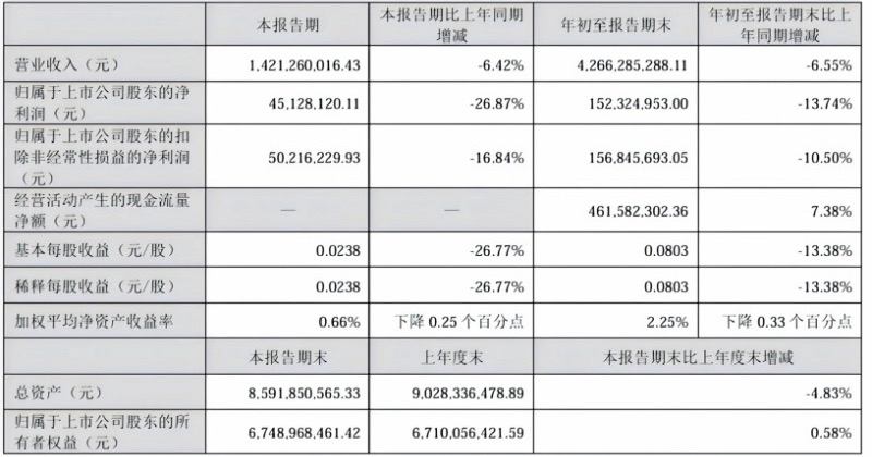 2025年,信邦制药的业绩低迷状态仍未扭转,前三季度公司实现营收42.66亿元,同比减少6.55%;归母净利润1.52亿元,同比减少13.74%。