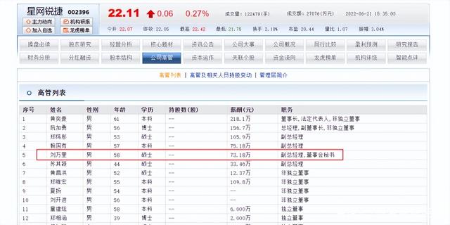 随后,刘万里加入了星网锐捷,担任公司董事会秘书、副总经理,薪酬达到73.18万,但不是副总中薪酬最高的,最高的是副总郑炜彤,年薪达到105.9万。