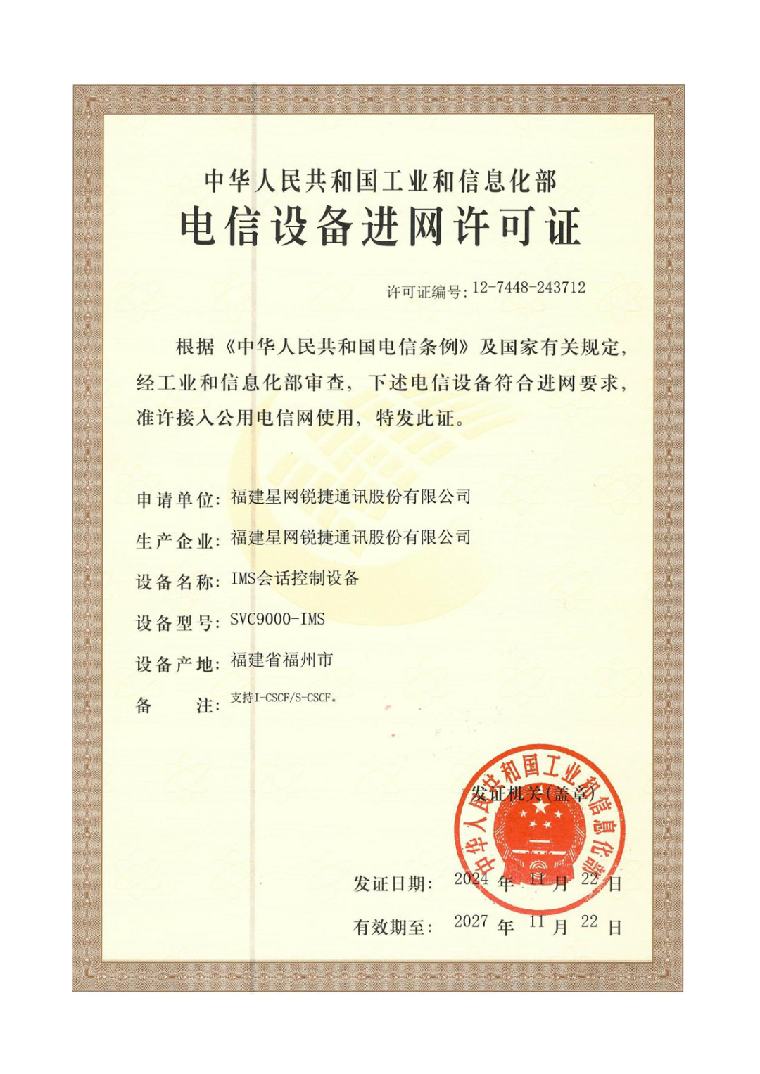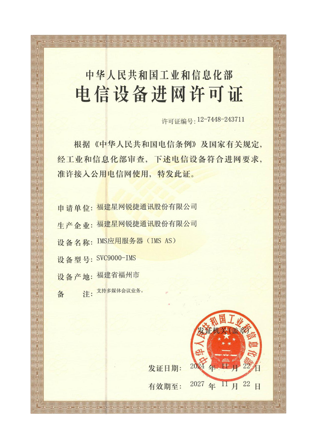 近日,星网锐捷IMS多款产品取得里程碑式进展,多款语音核心产品顺利通过专家组评审,完成工业和信息化部入网测试和相关审查,正式获颁工信部电信设备进网许可证。目前,星网锐捷统一通信入网产品家族已包含IMS应用服务器、IMS会话控制设备、IMS会话边界控制器、IMS计费设备,成为国内为数不多的获取该核心网设备入网许可的统一通信厂商。
