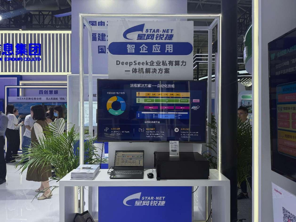 展会现场,星网锐捷带来的全栈国产化AI产品——DeepSeek企业私有算力一体机吸引了众多观众。据悉,该一体机将多种硬件、系统软件以及应用模型高度集成,提供“开箱即用”的大模型精调与推理环境。通过软硬协同优化,突破传统算力瓶颈,支持从十亿至千亿级模型的灵活部署,可以帮助企业快速搭建代码审查、智能客服、企业私有知识库等解决方案,大幅降低企业部署成本,助力开发者和科创企业以AI实现降本增效。