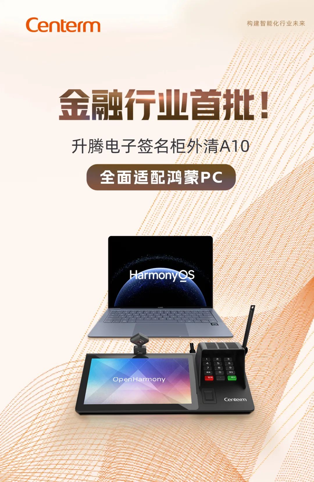 5月19日,华为正式发布搭载鸿蒙操作系统的PC产品,标志着国产操作系统首次以全场景、全栈自主能力进军PC领域,星网锐捷旗下升腾资讯作为智能金融领域的领航者,为了更好拥抱鸿蒙操作系统,第一时间攻克技术难题,实现升腾电子签名柜外清与鸿蒙PC、升腾移动终端与鸿蒙平板成功适配。值得一提的是,这两款产品均是金融行业首批实现与搭载鸿蒙操作系统产品的适配,为进一步构建独立自主、安全可控的产业生态贡献力量!