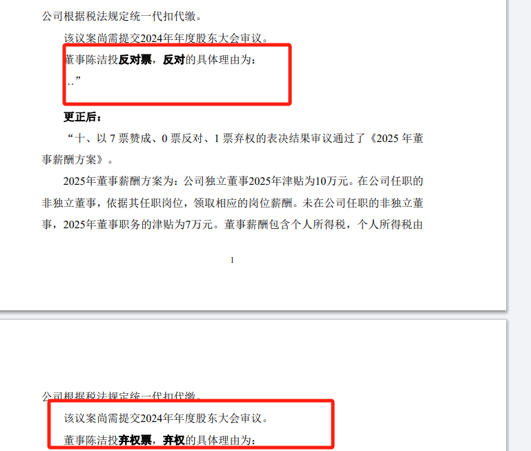 公告显示,梦洁股份对董事陈洁的投票意见类型进行修正,由原披露的"反对票"更正为"弃权票”。