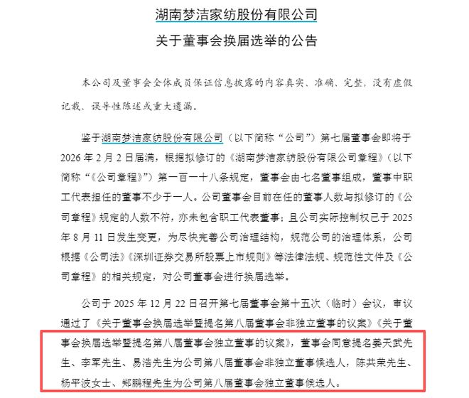 红星资本局12月24日消息,老牌家纺巨头 梦洁股份 (002397.SZ)董事会开始换届,拟对董事会进行“缩编”。