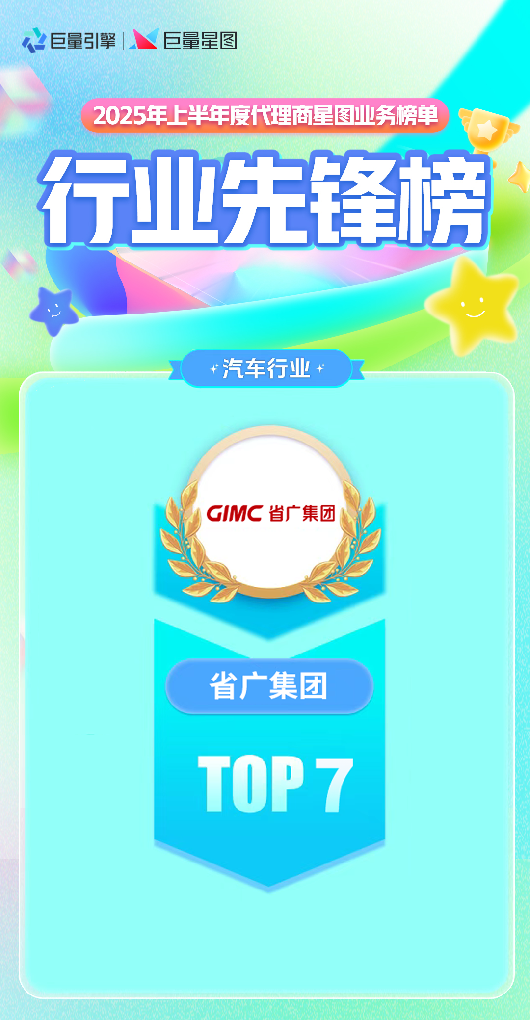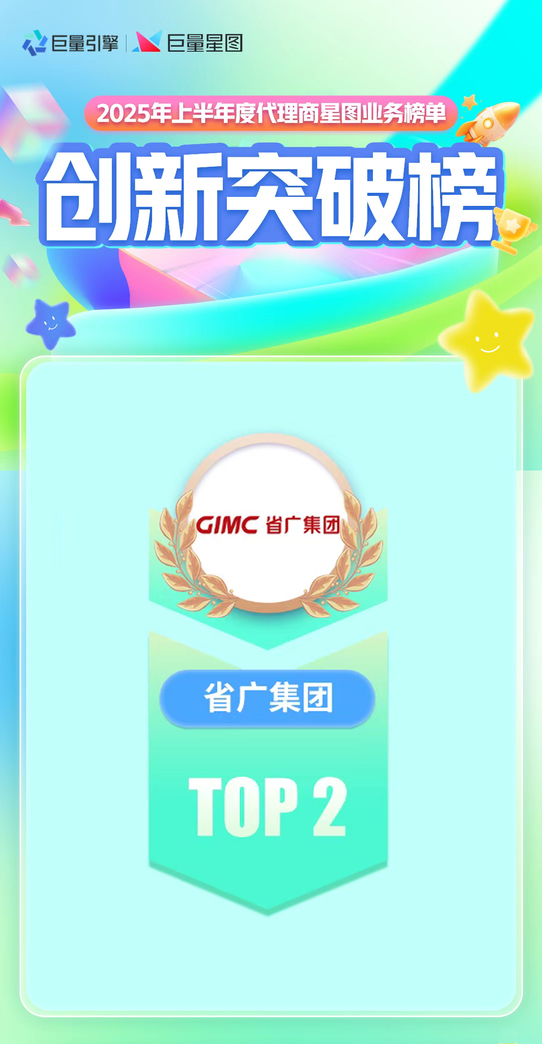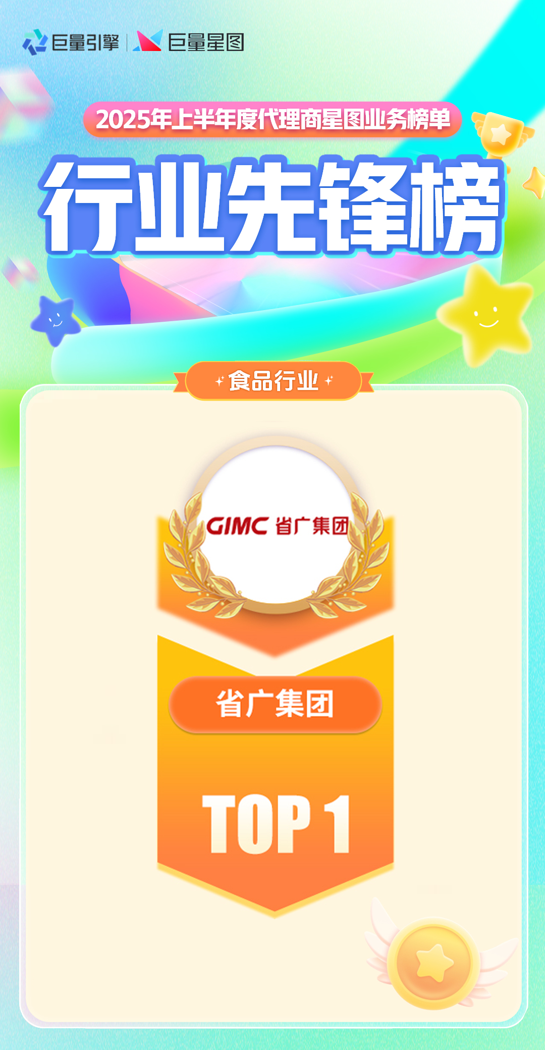 7月29日,巨量引擎发布2025上半年度代理商星图业务榜单,省广集团凭借在达人资源和产品的创新能力以及垂直业务赛道的综合实力,荣膺创新突破榜TOP2,行业先锋榜食品行业赛道TOP1、汽车行业赛道TOP7等多项殊荣。