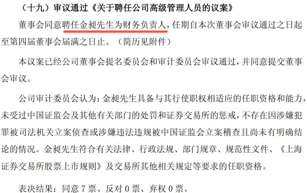 公司董事会同意聘任丁斌全为公司财务总监。其历任公司财务部副经理、财务经理、总监,现任公司财务部部长。