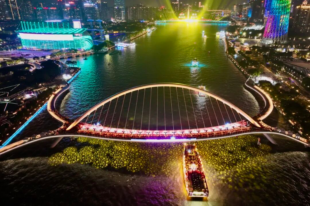 这场以海心桥为T台、广州塔为背景的时尚盛宴,集结了院士专家、平民英雄与国际超模上千人同台走秀,在璀璨的城市地标中上演了一场融合体育精神与时尚魅力的视觉盛宴,生动诠释了“合伙经营城市”的核心理念。