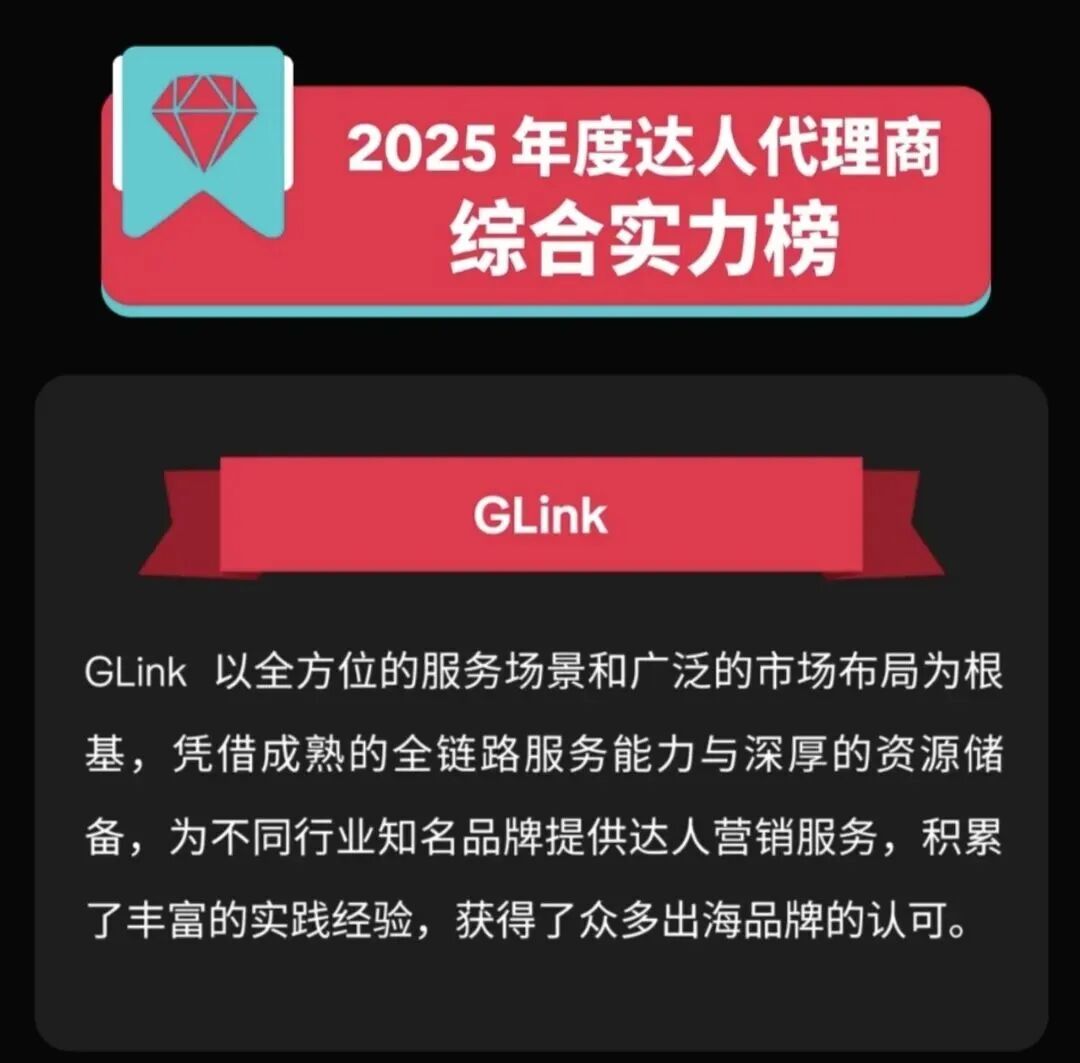 此次GLink入选TikTok for Business“2025年度达人代理商综合实力榜”,不仅是 省广集团 在达人营销领域专业能力的集中体现,更是集团在全球化营销生态中持续创新、不断提升服务价值的重要成果。