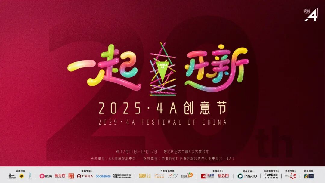 12月11日-12日,在 中国商务广告协会 综合代理专业委员会(简称“中国4A”)成立二十周年之际,4A创意节——中国创意视野暨第二十届4A创意奖颁奖典礼在北京举行。此次盛典不仅是对年度优秀创意作品的表彰,亦是对二十年来推动中国广告行业发展的机构与个人的致敬。