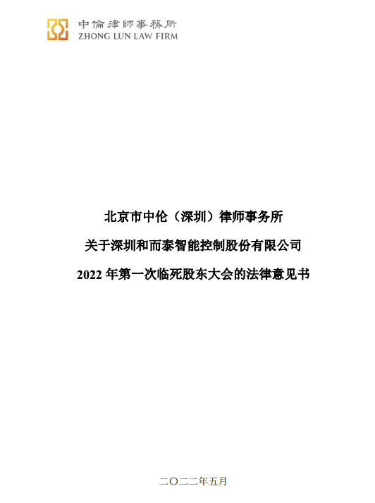 和而泰发布名为《北京市中伦(深圳)律师事务所关于和而泰2022年第一次临时股东大会的法律意见书》的公告标题显示,撰写人或因笔误,该公告开头就将“临时股东大会”写成了“临死股东大会”。