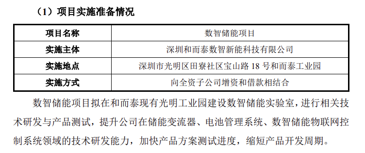 数智储能项目拟在和而泰现有光明工业园建设,预计投资金额为12,369.41万元,拟使用募集资金总额10,000.00万元,本次募集资金拟用于支付设备及软件购置费、研发物料费、人员薪资和检测认证费。通过本项目实施将提升公司在储能变流器、电池管理系统、数智储能物联网控制系统领域的技术研发能力,加快产品方案测试进度,缩短产品开发周期。