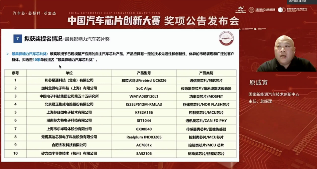 图:中国汽车芯片创新大赛奖项公告发布会-线上会议