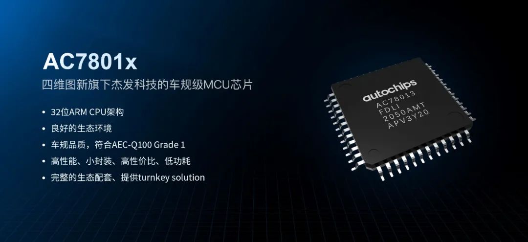 AC7801x系列车规32位MCU采用M0+内核,配备先进的CAN-FD总线接口,内置大容量Flash,外设接口丰富,适配灵活,满足AEC-Q100