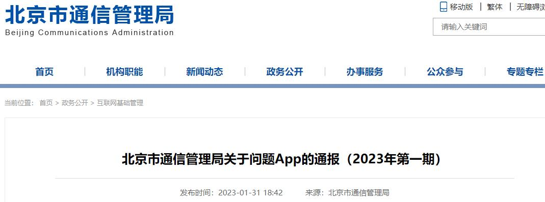 中国经济网北京2月9日讯北京市通信管理局网站日前公布《北京市通信管理局关于问题App的通报》(2023年第一期)。