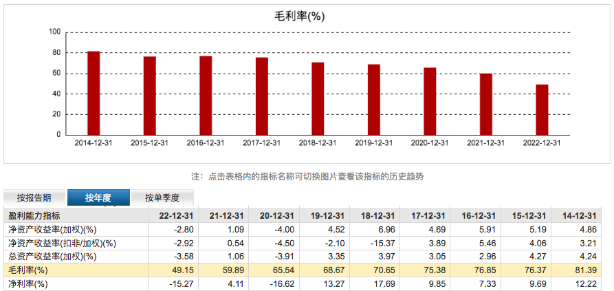 一季度的毛利率为51.61%,这一数字是四维图新自2009年以来的新低。此外他们2022年的毛利率49.15%,也创下了近6年来的新低。过去6年来,四维图新的毛利率一直在持续下滑。