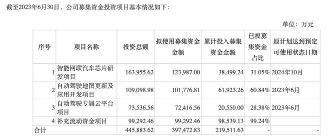 另一方面,四维图新的研发进度已经比原计划慢了半拍,新产品推出和商业化进度或将受到影响。2021年,公司完成40亿定增,资金计划用于智能网联汽车芯片研发、自动驾驶地图更新及应用开发、自动驾驶专属云平台项目。但以上项目进度缓慢,其中,自动驾驶地图更新及应用开发项目、自动驾驶专属云平台项目原计划在今年6月达到可使用状态,但截至6月末项目进度仅分别为60.84%和28.38%。根据公告,自动驾驶专属云平台项目已延期至2024年12月。