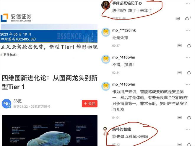 值此节点,四维图新在概念迭代上再接再厉,又被冠以“新型Tier1”光环且获多家券商机构追捧。只是,四维图新的一系列宏大战略叙事,在股民“跌了十年”、“能先做点利润出来吗?”等脱口而出的疑问之下都略显讽刺与苍白。