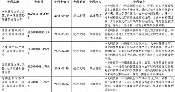 四维图新12月21日公告,近日,公司及下属公司武汉四维、中寰卫星、杰开科技获得中国国家知识产权局颁发的发明专利证书。专利名称分别为车辆检测方法、装置、前车防撞预警设备及存储介质、墙体采样线的平滑处理方法和装置、图像语义标注方法、设备和存储介质、图像标注方法、装置、电子设备和存储介质、地图数据采集路径规划方法、装置、设备及存储介质、地图数据处理方法、装置、设备和存储介质、图像处理方法及装置、基于高精度地图数据众包更新系统的评估方法及装置、车辆定位方法、组件、电子设备及存储介质、一种过冲保护电路、方法及芯片。