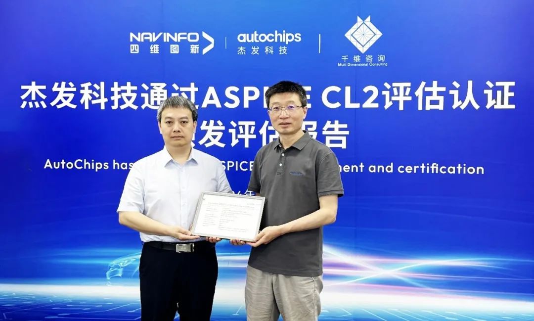 “6月15日,四维图新旗下杰发科技在上海举行颁发评估报告仪式,宣布公司车规级MCU芯片AC7840x系列的底层软件顺利通过ASPICE CL2终审评估,杰发科技CTO李文雄和第三方认证机构千维管理咨询总经理刘亮出席仪式。该评估的通过,表明杰发科技车规级芯片和解决方案在软件开发流程和质量控制体系再次得到提升,能满足全球主要汽车厂商和Tier 1严格的质量和开发能力要求。”