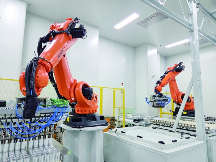 在河南焦作多氟多新能源电池的智能生产车间,机械臂高效运转,精准抓取一支支银色圆柱电池。每天,超过20万支“氟芯”大圆柱电池从这里下线,走向全球新能源市场。