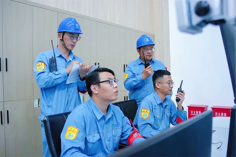 演练按照“全过程、全要素”实战化练兵,科学设置了消防水炮降温处理、可燃气体检测、设置警戒区域、紧固消漏实战科目。
