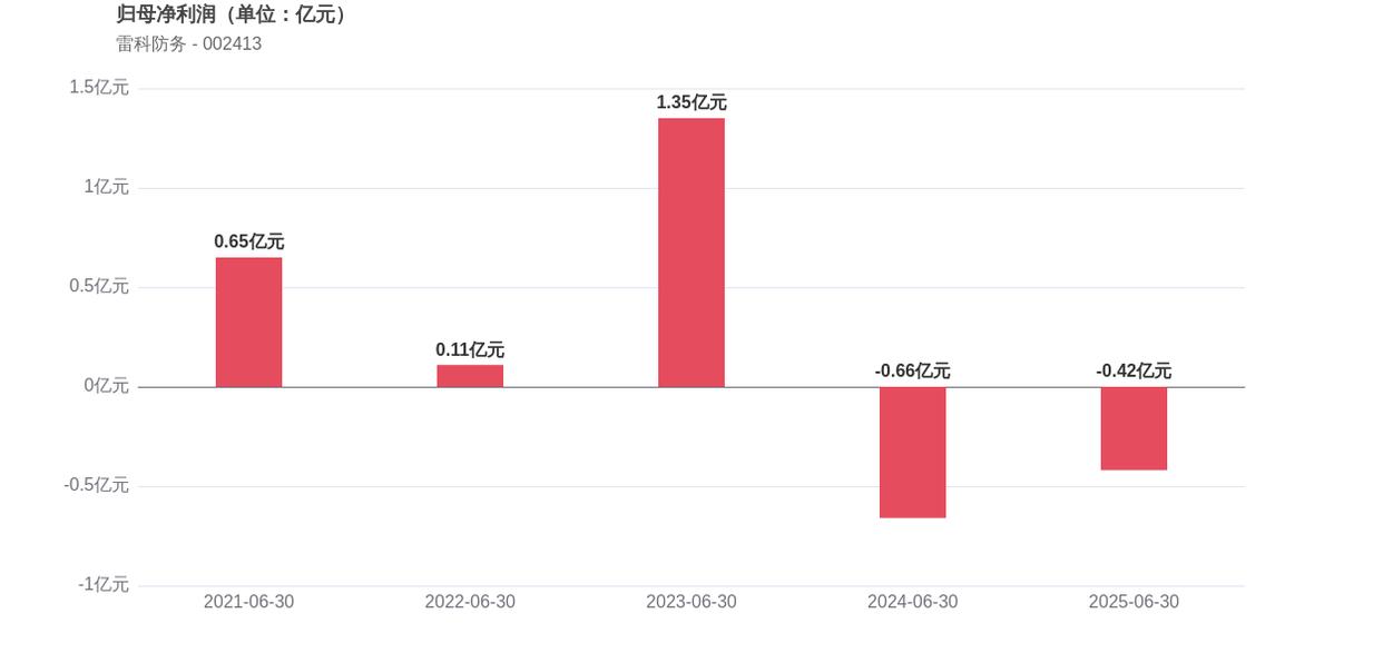 在2025年上半年,雷科防务的经营业绩呈现收入增长但仍处亏损状态的特点。引人关注的是,公司已连续2年中报出现亏损,实现归母净利润-0.42亿元,同比增长37.27%,营业收入5.42亿元,同比增长9.77%。