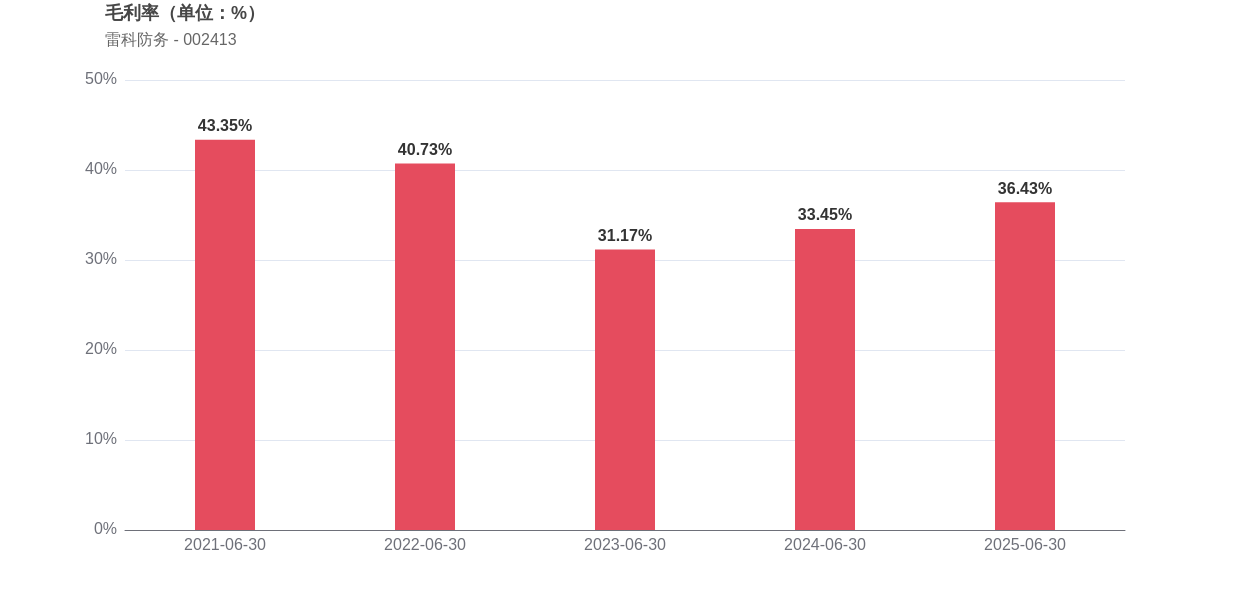 从反映盈利质量的指标来看,雷科防务净利率由2024年上半年的-12.83%提升至-6.75%,毛利率从33.45%提升至36.43%,净资产收益率为-1.22%,同比增长0.57个百分点,显示出盈利质量有所改善。