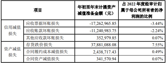 高德红外关于公司计提2022年度资产减值准备的公告显示,经过对公司2022年末应收账款、应收票据、其他应收款、存货、合同资产、商誉、合同履约成本等进行全面清查和资产减值测试后,公司计提信用减值损失-28,150,969.75元和资产减值损失40,661,376.45元。