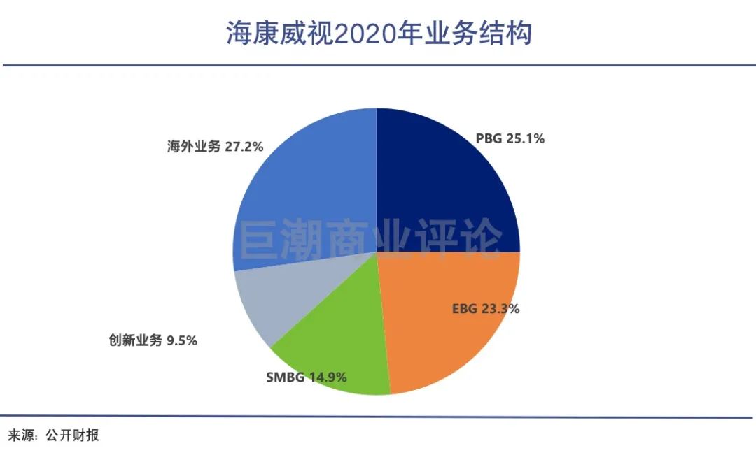目前,海康威视拥有PBG(公共服务事业群)、EBG(企事业事业群)、SMBG(中小企业事业群)三大业务群,2020年这三大事业群对营收的贡献分别为25.67%、23.90%、15.25%。