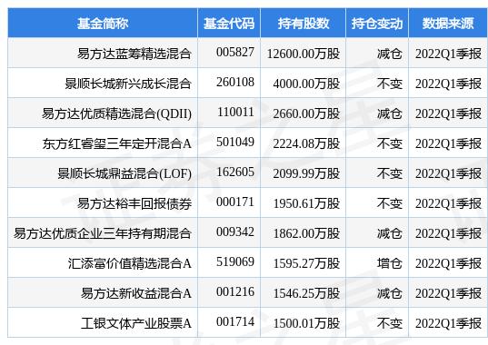 其中持有数量最多的基金为易方达蓝筹精选混合,目前规模为552.72亿元,最新净值2.1084(5月18日),较上一交易日下跌0.72%,近一年下跌28.49%。该基金现任基金经理为张坤。