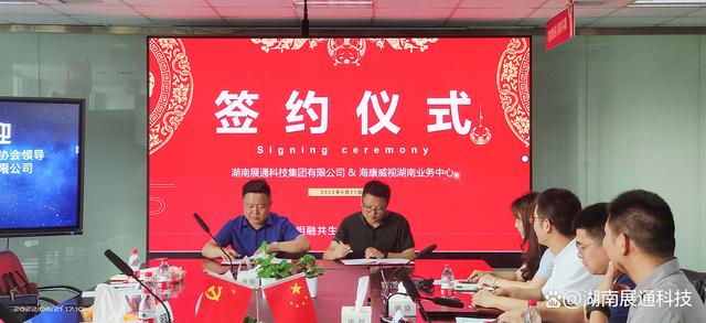 6月21日,展通集团董事长邹展志、运营副总盛以林、湖南省职业安全健康协会理事长杨国庆、秘书长何小明等一行前往海康威视开展座谈交流。双方就深入安全生产物信融合解决方案领域合作进行了详尽的探讨,并签订了战略合作协议。