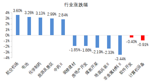 12月7日软件开发板块跌0.4%,计算机设备板块跌0.9%。上证指数跌0.4%,创业板指涨0.87%。其中,航空机场、电池、化学制药涨幅居前,非金属材料、地面兵装等板块跌幅居前。