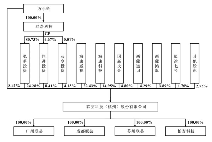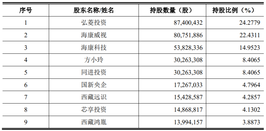 IPO前,弘菱投资持股为24.2779%,海康威视持股为22.4311%,海康科技持股为14.9523%,据介绍,海康科技是海康威视的全资子公司。