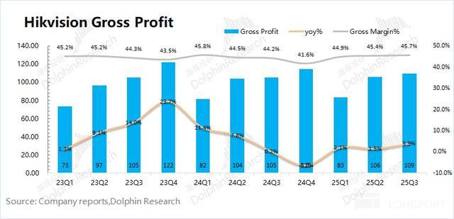2.毛利及费用端:海康威视 2025 年第三季度的毛利率 45.7%,同比提升 1.5pct,主要来自于硬件端毛利率的提升和创新业务占比提升的带动。