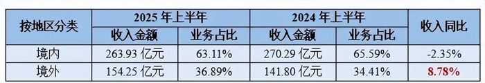 仅看2025年上半年,海康威视海外营收增加13亿元左右,较去年同期增长8.78%,业务占比提高了2.48个百分点,来到36.89%。