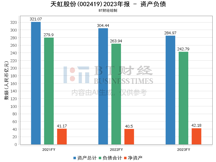 在资产负债方面,天虹股份2023年年报显示,期末总资产为284.97亿元,相比期初的304.44亿元有所下降。负债合计期末余额为242.79亿元,较期初的263.94亿元减少,反映出公司在减负方面取得了一定成效。净资产从期初的40.5亿元增长至期末的42.18亿元,资产负债率从期初的86.7%降至期末的85.2%,显示公司的财务结构有所优化。